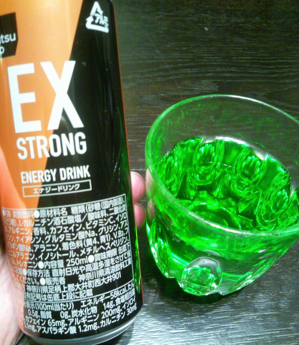 マツモトキヨシ EX STRONG 色がヤバい 全国展開するドラッグストアのマツモトキヨシのPB商品で税別138円。これ以外にも何種類かあるが、どれも極彩色で、これは鮮やかな緑。成分は100mlあたり58kcal、カフェイン65mg、アルギニン0mgで相当ヤバい。 「「「エナジードリンクは砂糖水です!!」」」 たった今、全国のエナージードリンク愛好家を敵に回したまぐです。 実際のところエナジードリンクに否定的な主張をする人ってよくいますよね。 「エナジードリンク エナジードリンクといえば「レッドブル」や「モンスターエナジー」が代表格だが、最近ではマツモトキヨシの「matsukiyo EXSTRONG CAFOON エナジードリンク」など、味や見た目が尋常じゃないエナジードリンクもあるという。 ※カフェインの過剰摂取をさける